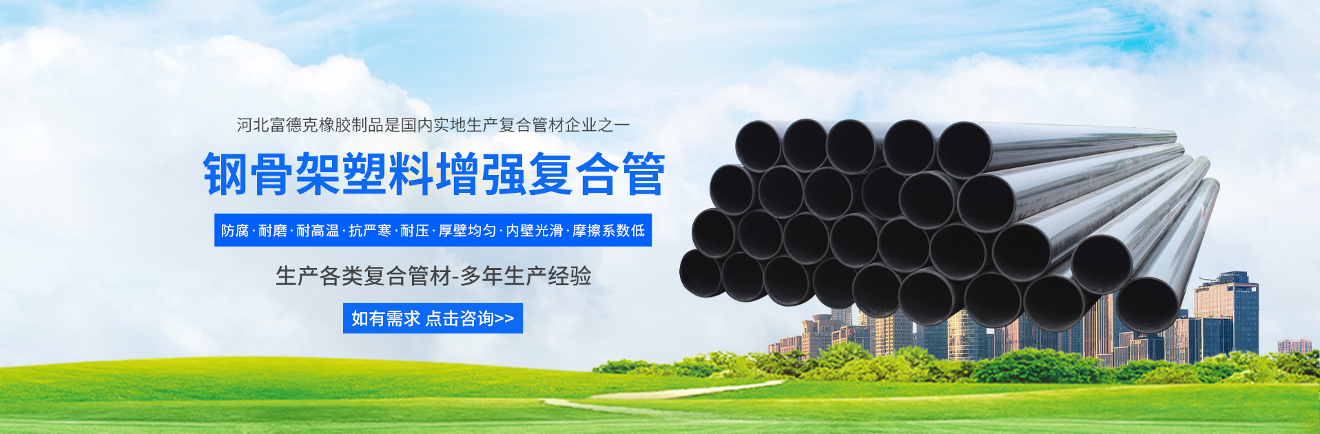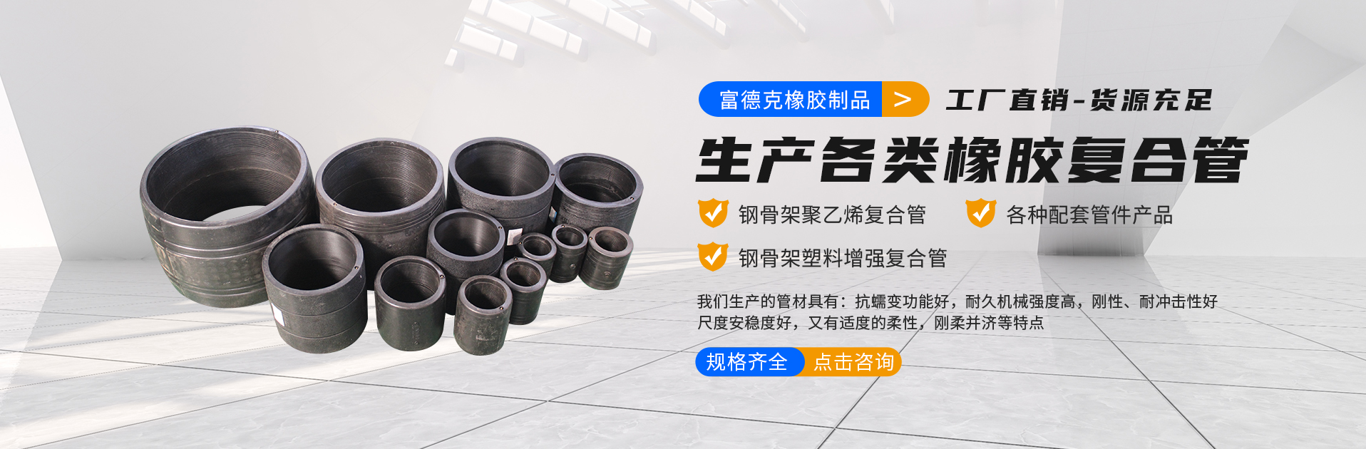 河北富德克橡膠制品有限公司,始建于2013年,座落于千年古城--河北景縣城南開發(fā)區(qū),公司占地面積3.8萬平,注冊資金6200萬,廠區(qū)公司成立以來專注于鋼骨架聚乙烯復(fù)合管設(shè)備研發(fā)及管材的生產(chǎn),現(xiàn)有員工228名,其中高級工程師3名,中級工程師10名,技術(shù)人員18名,年產(chǎn)值達(dá)1.2億。公司專業(yè)生產(chǎn)鋼骨架聚乙烯復(fù)合管、HDPE雙壁波紋管、PE鋼塑復(fù)合管、配套管件、液壓軟管、輸水膠管、金屬軟管、膨脹節(jié)、補(bǔ)償器、橡膠接頭、金屬接頭、管件、輸送機(jī)械及配件、穿線管、四氟產(chǎn)品、復(fù)合軟管、濾芯、礦山配件、止水材料、···